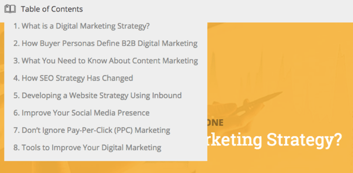 As you can see below, this is our table of contents which encompasses all of the subtopics in our topic cluster.