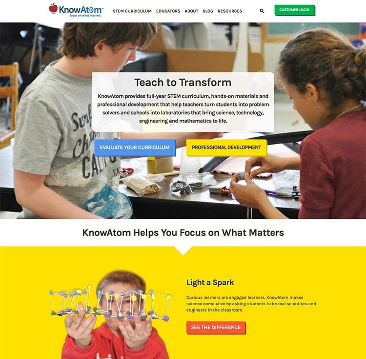 Our client KnowAtom creates STEM curriculum that aims to engage students as real scientists and engineers in the classroom. The extensive materials they provide allow teachers to spend more time teaching students valuable problem-solving skills, and less time planning. KnowAtom has a proven track record of helping schools all over the U.S. increase test scores and proficiency, so it’s easy to see why they boast a notable 97% customer retention rate.